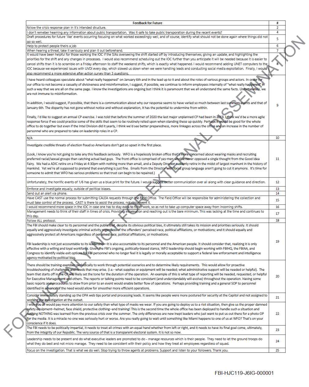 Rank-and-file agents slammed the bureau’s leadership, claiming political bias infected operations under James Comey and Chris Wray. “Our response to the Capitol Riot reeks of political bias,” one agent stated. Another wrote, “We have been used as pawns in a political war.”