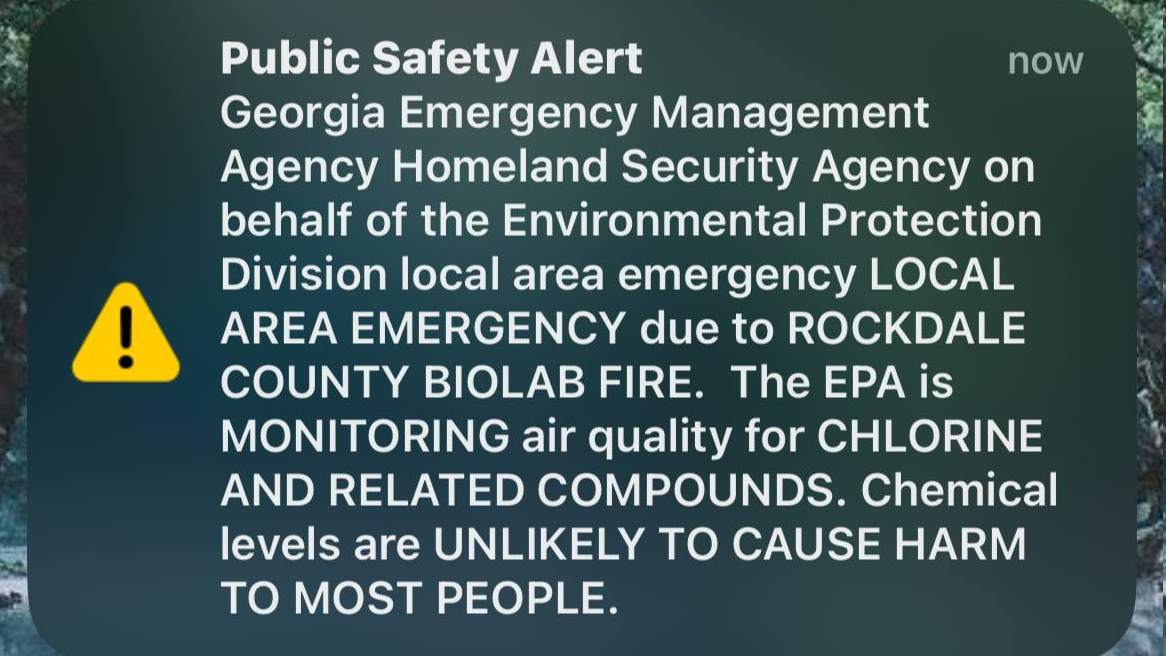 Over 90,000 residents in Georgia are sheltering in place after a chemical fire at the BioLab Inc. facility in Conyers released a large plume of smoke and harmful chemicals. The haze and chemical odor reached Atlanta by Monday morning, leading officials to monitor air quality. Residents were advised to keep their windows shut and air conditioning off.